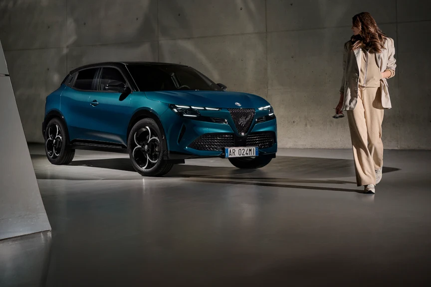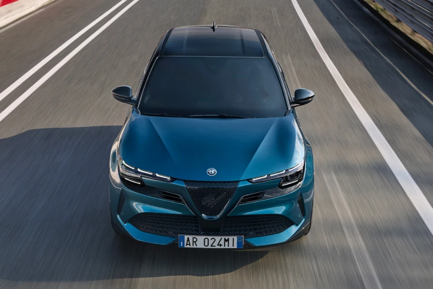 The Junior takes up Alfa Romeo's iconic styling cues with a dynamic, compact silhouette. Its expressive front end and sculpted lines reinforce its sporty character while maintaining excellent aerodynamic efficiency.
